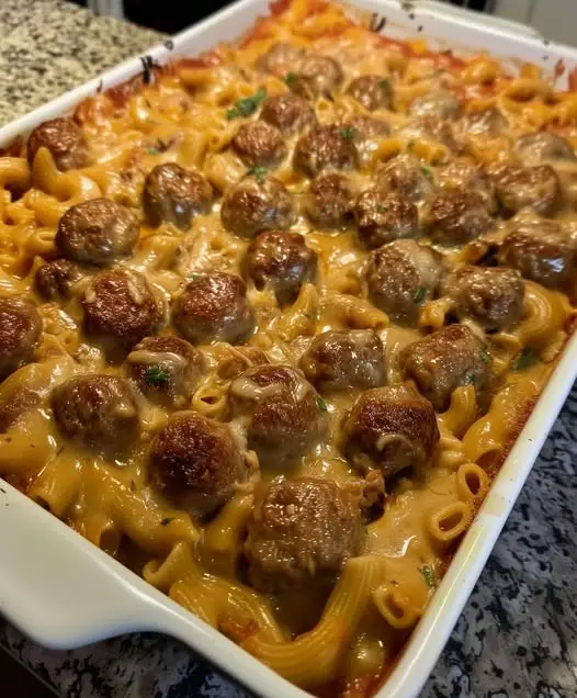 Juicy meatballs, tender pasta, and rich tomato sauce baked with gooey cheese — a crowd-pleasing classic.