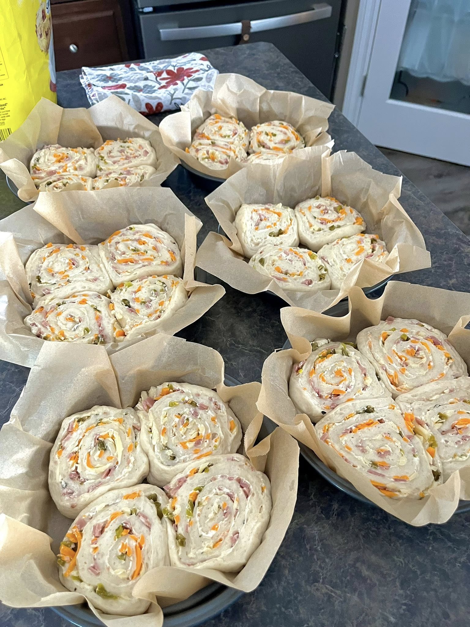 Place pinwheels on a parchment-lined baking sheet, spacing them about 1 inch apart.