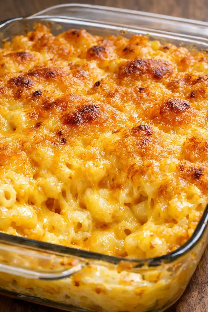 Critical step: Remove from oven and let it rest for 10 minutes (do NOT skip this). The mac and cheese continues to set as it cools. Cutting into it immediately will give you a soupy mess.
