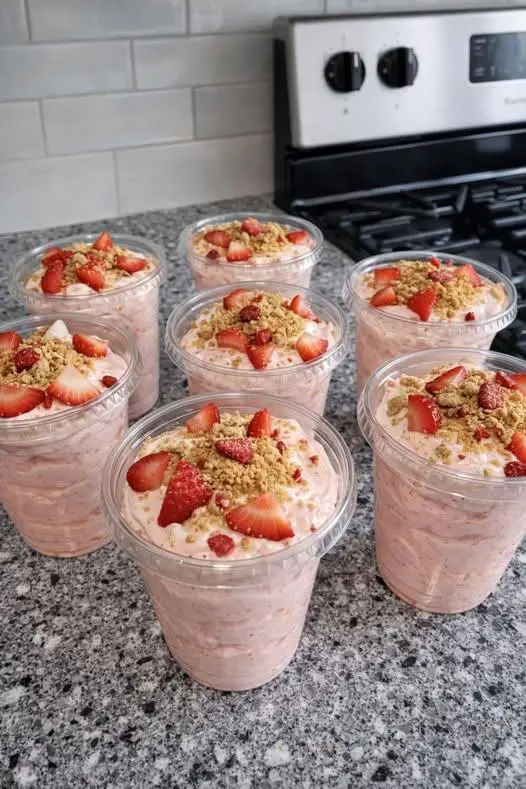 Garnish and Enjoy: Top with fresh strawberries and a sprinkle of crushed graham crackers for that authentic cheesecake experience. Grab a large spoon and dive in!