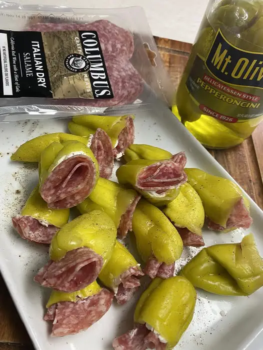 Stuffed Peperoncini are tangy, mildly spicy pickled peppers that are hollowed out and filled with a creamy, savory filling — typically involving cheese, herbs, and sometimes cured meats. They’re a staple on antipasto platters and often served at Italian-American gatherings, game days, or holiday parties.